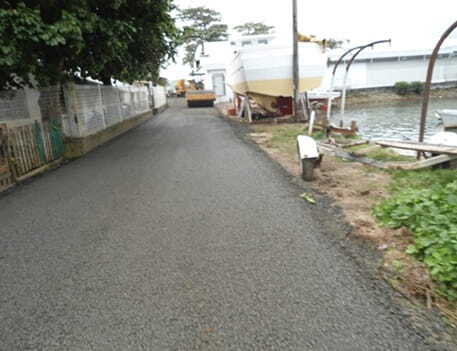 - La reconstruction du tronçon 1 Bis entre le début de la Digue Belle-Vue et la fin de la Digue Ilot Madame sur 1 km environ 4) la reconstruction de 5 ponts existants (ponts à poutres en béton armé, d'une longueur moyenne de 9m chacun)